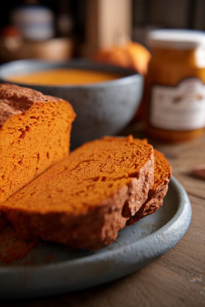 Das Kürbisbrot passt hervorragend zu süßen Belägen wie Marmelade, Honig oder Nussbutter. Ebenso macht es sich perfekt als Beilage zu Suppen, besonders Kürbis- oder Linsensuppe. Für ein herzhaftes Frühstück kannst du es mit Käse oder Aufstrich servieren. Auch geröstet und mit etwas Olivenöl beträufelt ist es ein Genuss. Kombiniere es mit herbstlichen Getränken wie Apfelmost oder Tee, um den saisonalen Charakter zu unterstreichen.