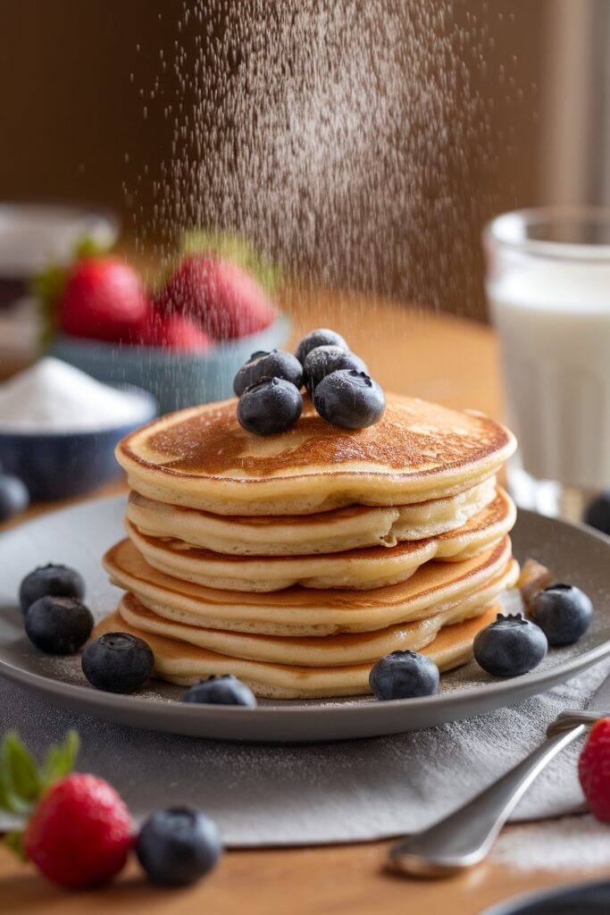 Dich erwartet ein einfaches, fluffiges Pfannkuchen Rezept, das goldgelbe Pfannkuchen mit leicht knusprigem Rand liefert. Der Teig ist weich, glatt und ohne Klümpchen, und die Pfannkuchen werden gleichmäßig gebräunt. Geschmacklich sind sie mild, leicht süßlich und herrlich neutral – perfekt, um mit süßen oder herzhaften Zutaten kombiniert zu werden. Ob mit Puderzucker, Apfelmus, Ahornsirup oder frischen Beeren: Diese Pfannkuchen lassen sich vielseitig und kreativ genießen.