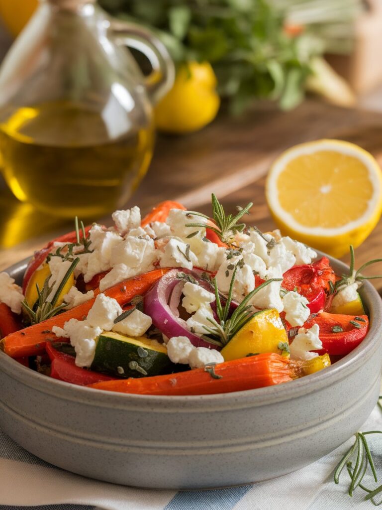 Dieses Ofengemüse mit Feta Rezept ergibt ein aromatisches, farbenfrohes und gesundes Gericht, das sich mühelos in den Alltag integrieren lässt. Perfekt als leichte Mahlzeit, vielseitige Beilage oder reichhaltige Bowl.